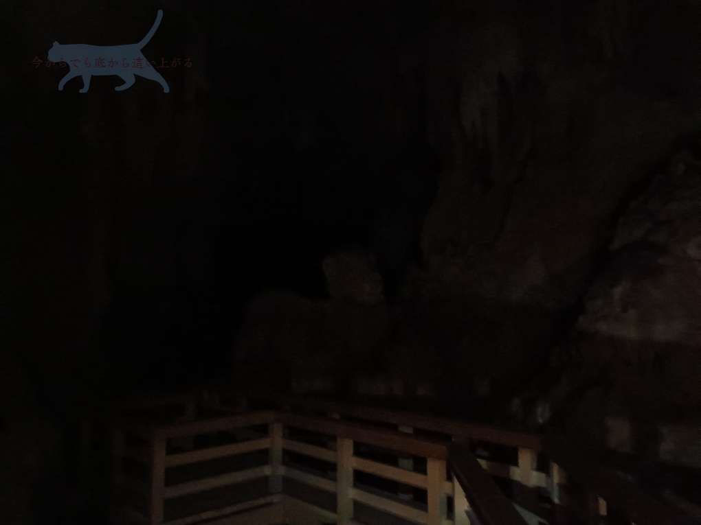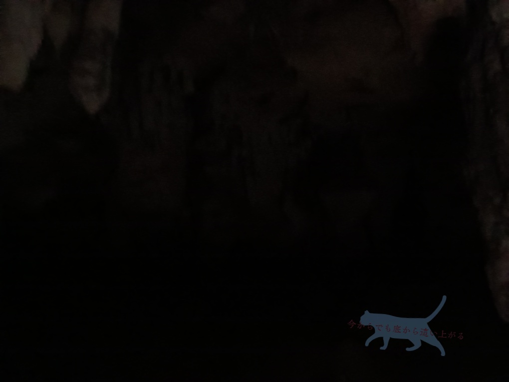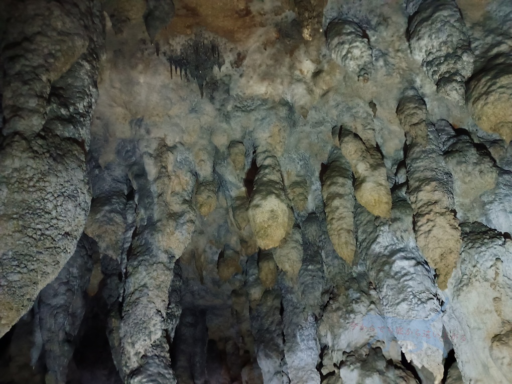画像だと伝わりずらいけども、鍾乳石にうまい具合の角度で光を当てるとキラキラと輝く。 天井も同様にやってみると星のようで綺麗すぎた。 おじさんの自分もうっとりw