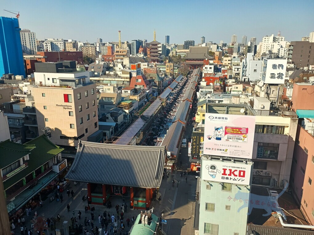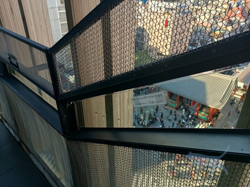 ちゃんとスマホで撮影できるように金網にも工夫されてるし、雷門や仲見世のようすも落ち着いて眺められる贅沢。