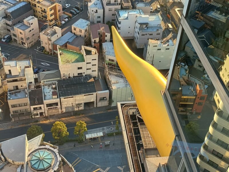 少し歩いて展望ラウンジ アサヒスカイルーム。 ここのトイレから見える金のう〇こ。
