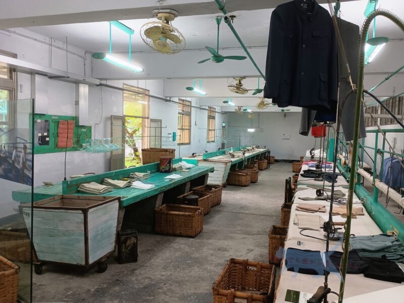 洗い場の横にはアイロンや裁縫場所。 政府機構のクリーニング施設では、看守所に残る人たちを強制的に働かされていたようだ。