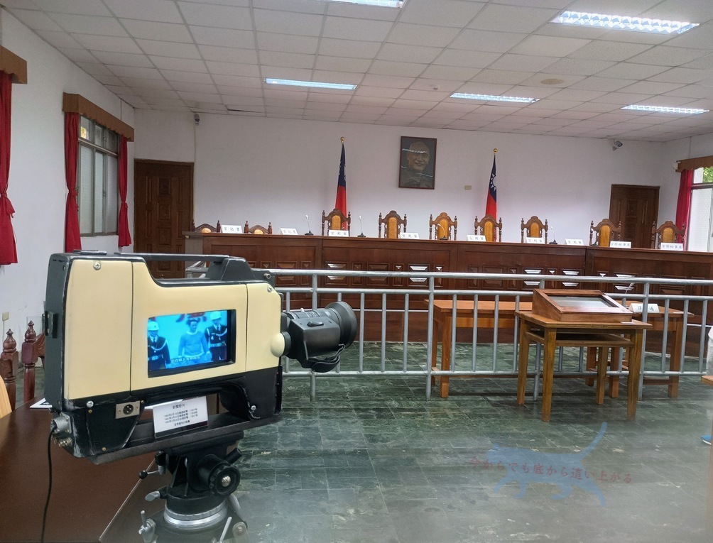 法廷ではカメラ横に当時の調査尋問などの映像が放送されていた。