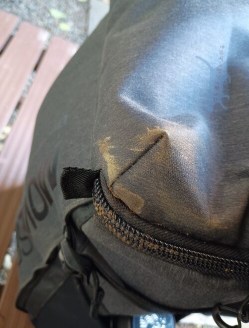 画像は当日背負っていたリュックなのですが、狭い洞内で壁を擦ったようで汚してしまった。 前で背負うべきでした…反省。