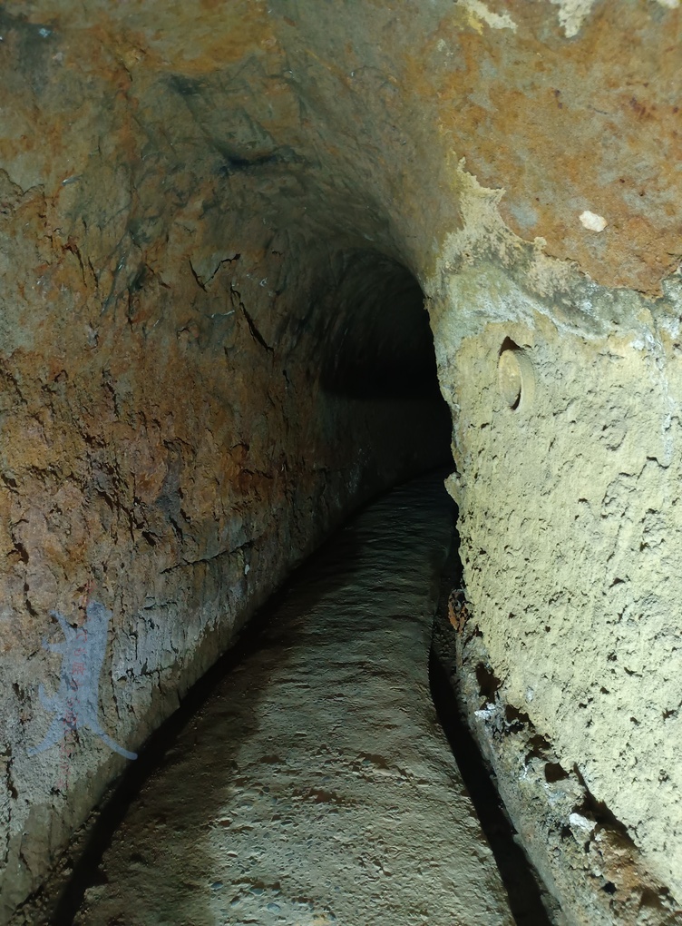 足場は整備されており段差もないので最後まで躓くようなことはなかった。にしても洞内は先が見通せないよう緩く曲がった道。 どの程度の距離なのかわからず、道幅も広くはない。