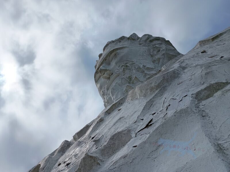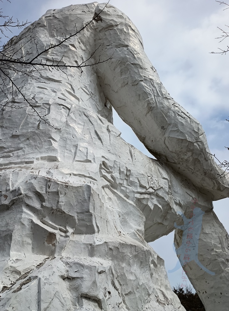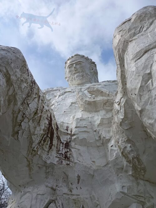 手のひら展望台から見上げるダイダラボウのご尊顔と初対面。  髭の影響もあるけど中央アジア系の雰囲気にも感じてしまう。