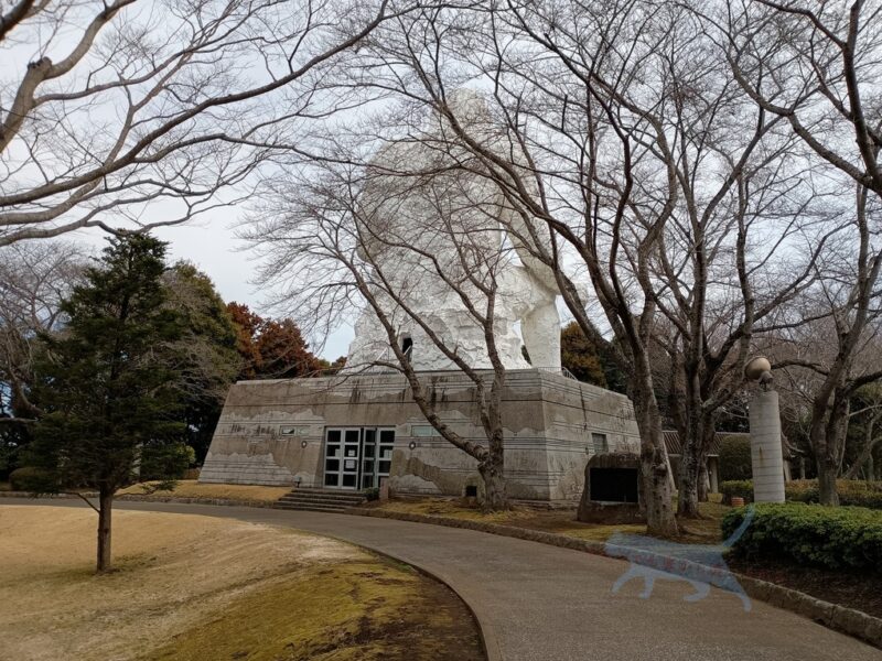 公園内にある水戸市埋蔵文化財センター。 無料ながら広い駐車場で館内も無料で見学できるという太っ腹。