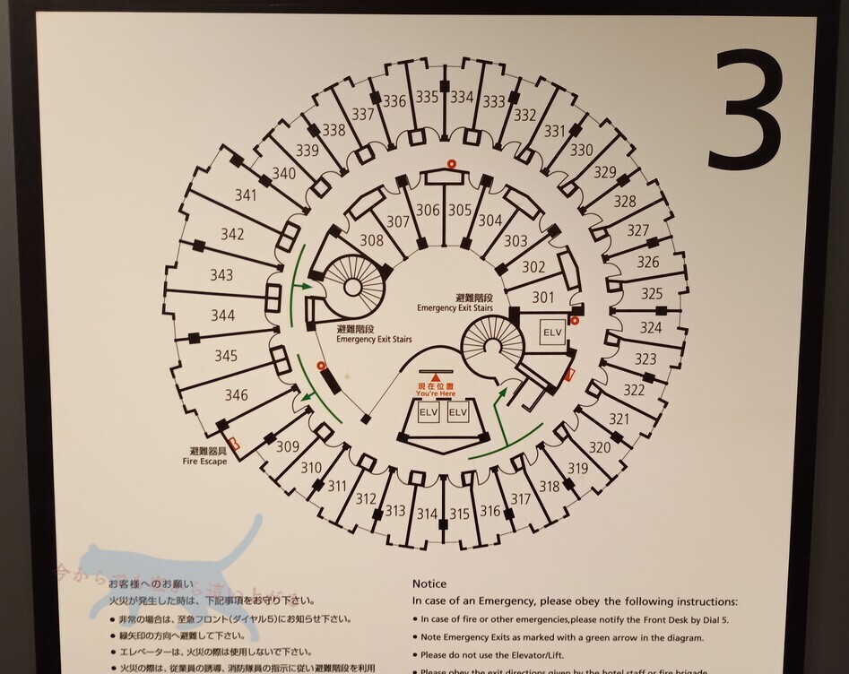 今回 アサインされた部屋は3階。 エレベーターも2基あるけど、誰よりも満喫したいので名物の螺旋階段へ移動。 美しい階段アート