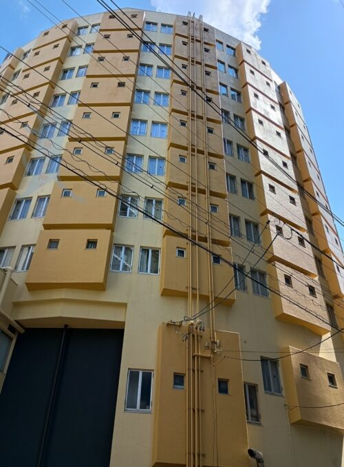 近くで見上げると迫力あるね。色と形状から「とうもろこしホテル」とも呼ばれてるとかw