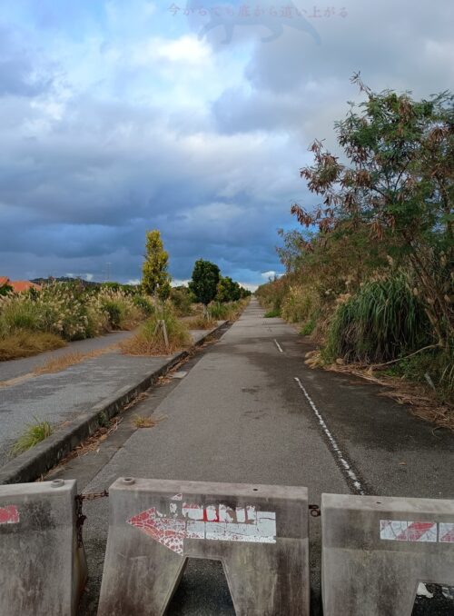 ※すぐ隣にはもっと幅広い読谷補助飛行場跡の道路があるけども、親子連れが平和そうにボール遊びをしていたので撮影は控えました(;´Д`)