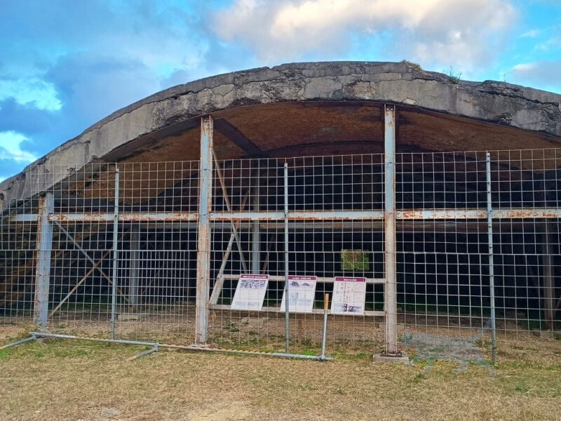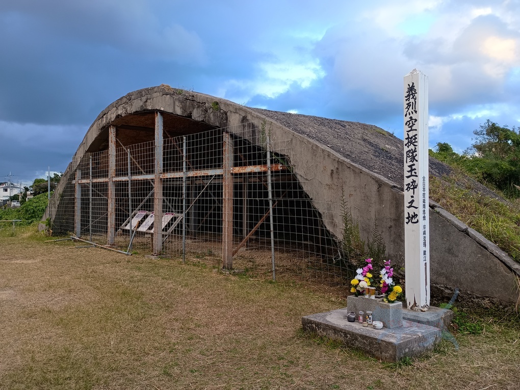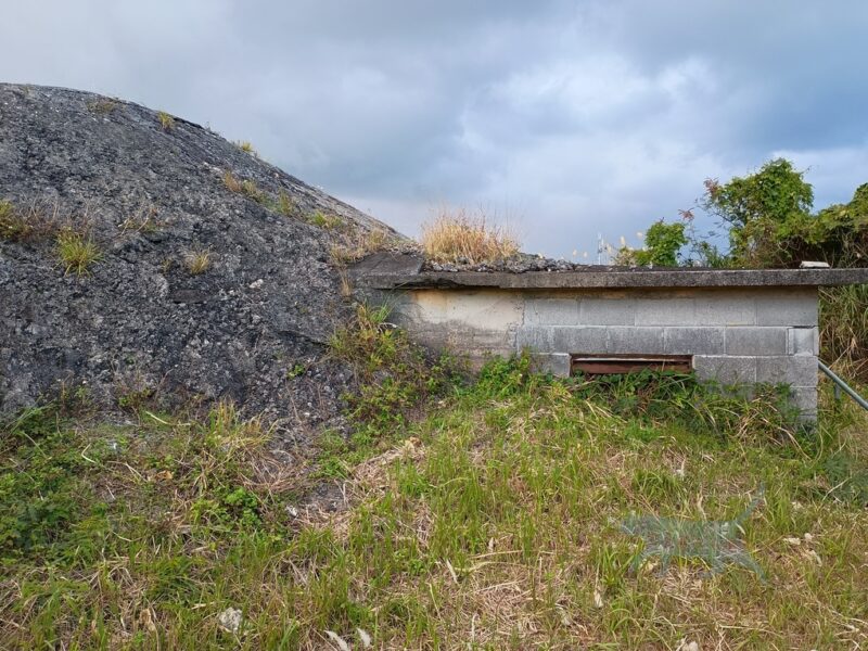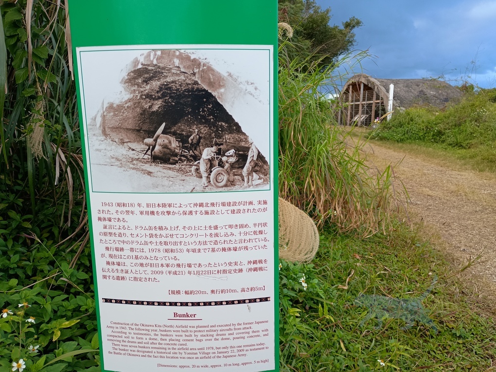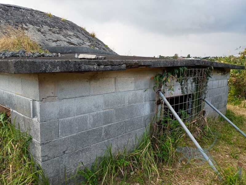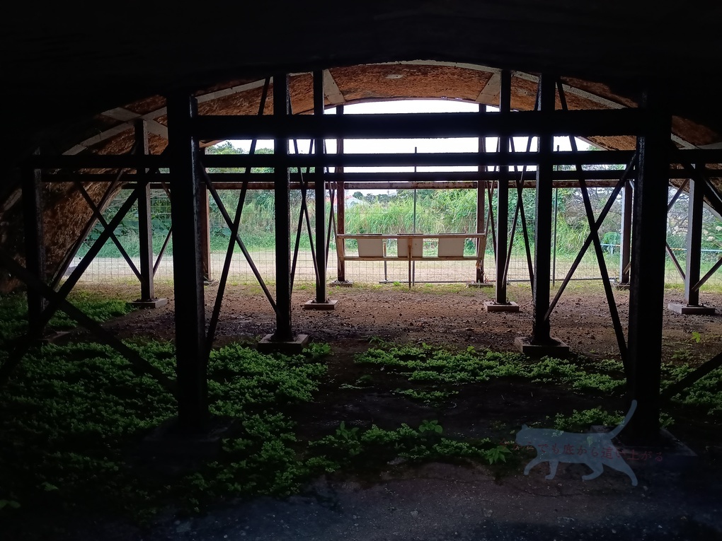 読谷村指定文化財に指定になっている為か解説まで設けてくれている。旧日本軍が戦闘飛行機を隠し、機体を守るらめに作られたセメント造りのシェルター。