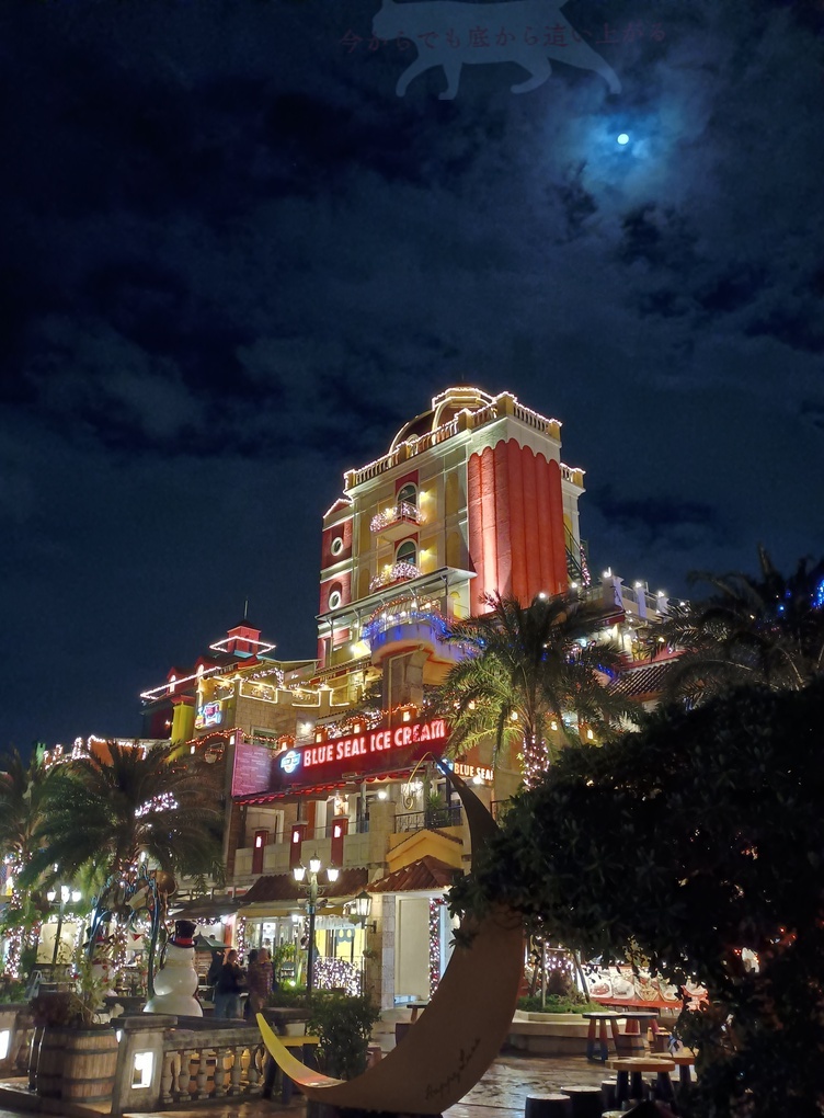 アメリカンヴィレッジは街並みや建物の雰囲気がアメリカのようだと人気スポット。 自分はアメリカに行ったことないけど、想像する華やかなアメリカが凝縮されるようなエリア。 米軍基地の人達も遊びに来てるからなお更に感じる。 日中は戦争遺跡を巡り、夜はアメリカンヴィレッジで締める工程に少し違和感を感じつつも終。