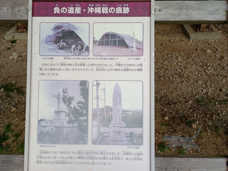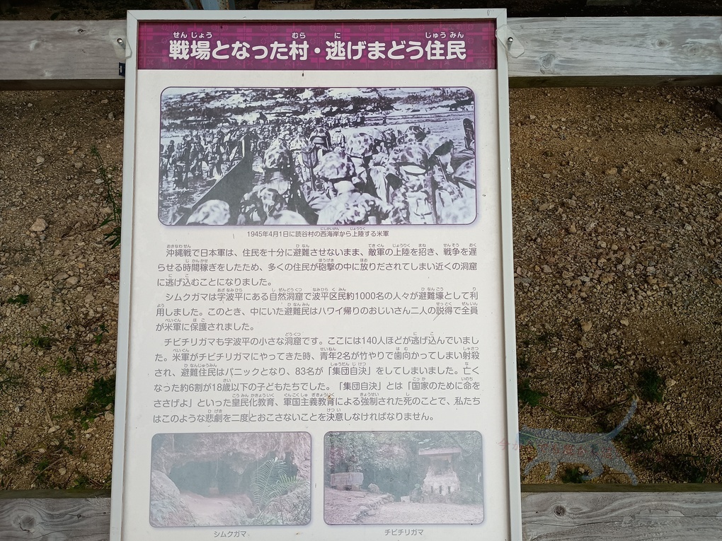 こちらにも掩体壕や周辺のガマでの惨劇などの解説板が設けられていた。