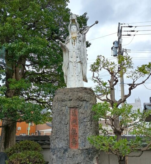 参道の左手にある像は浅野祥雲作・護国観音像。 珍スポット検索していると度々お名前を見ることがある日本のコンクリート像作家。
