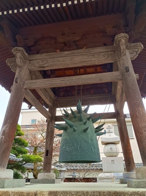 愛知県名古屋市北区大杉にはるお寺。曹洞宗・久国寺。 こちらの境内には太陽の塔などで知られている岡本太郎氏が制作した梵鐘「歓喜の鐘」があると知りました。