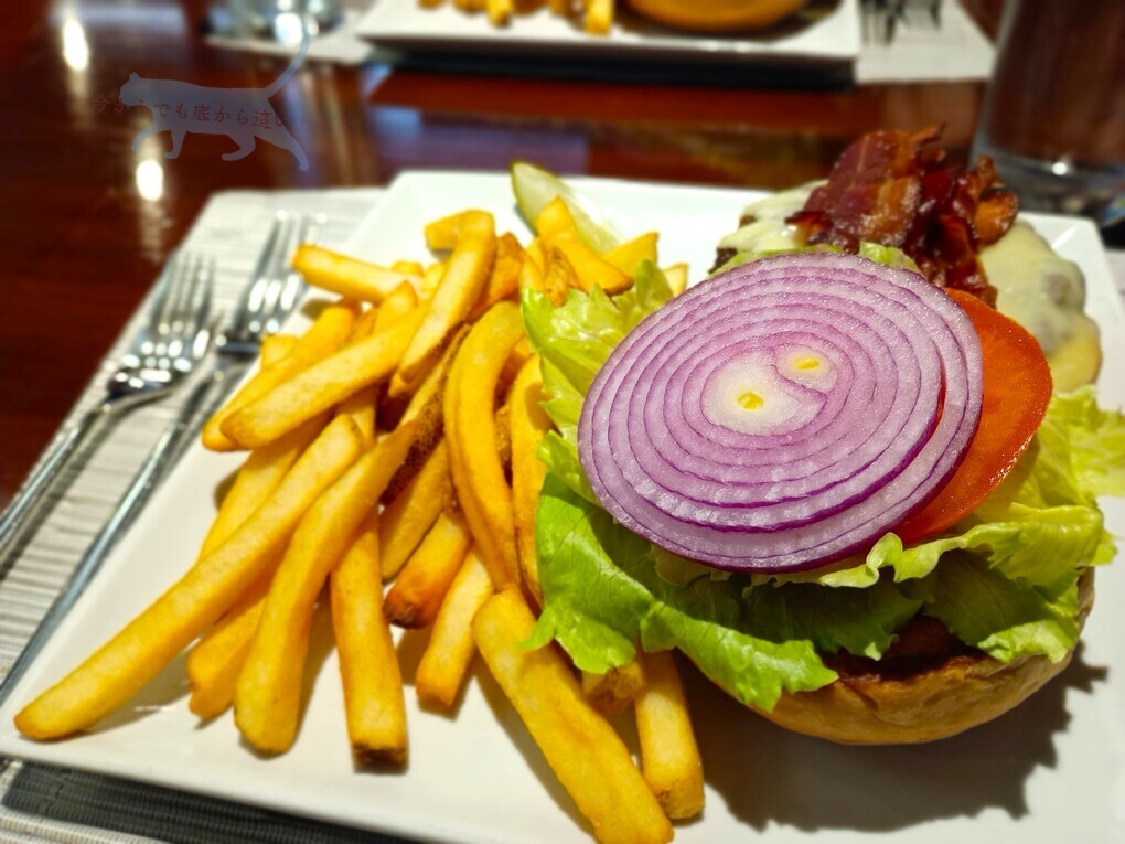 間もなくして注文していたバーガーが到着。 思わず声が出てしまうほど美味かった。 付け合わせのポテトも最高!