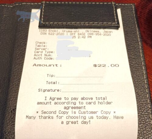 基本はドル支払い。(某ブログでは日本円も可とあったけど未確認) 手持ちにドルなんてないのでカードで支払い。 チップの相場なんてわからないので、その場でググった額を自分で記入して会計。 後日届いたカード明細を見ると使用した国がUSAとなっていた。