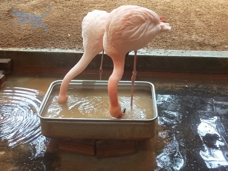 先ほど見た「フラミンゴQ&A」にも書かれていた通り、フラミンゴたちは常に嘴を水面につける動作をしている。それは水中のプランクトンを摂取しているらしいけど… めっちゃ頭ごと突っ込んでいるフラミンゴには勇気をもらった!
