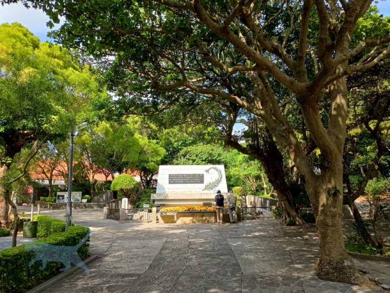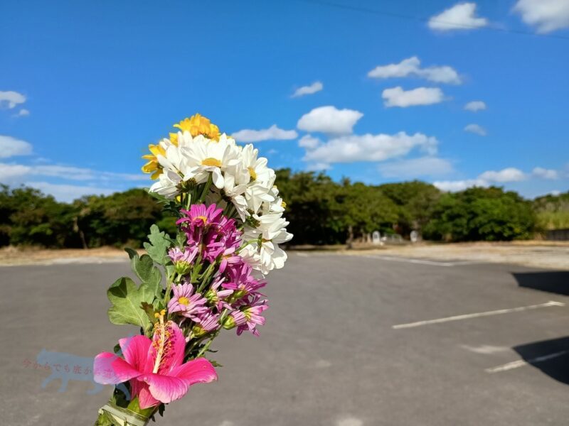 多くの人が訪れるひめゆり平和祈念資料館の近くには献花販売店があるので購入。 その花をもって少し移動。