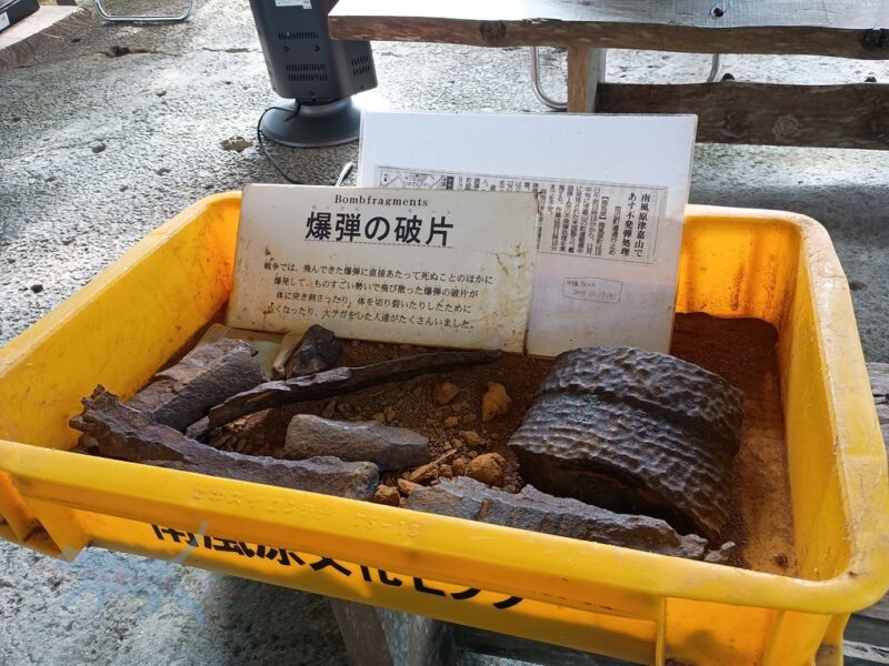 その間に爆弾の破片など実際に触れることが出来たけど、これが想像を超える重さ。 こんな小さな破片でも当たれば…と考えるとゾッとする。