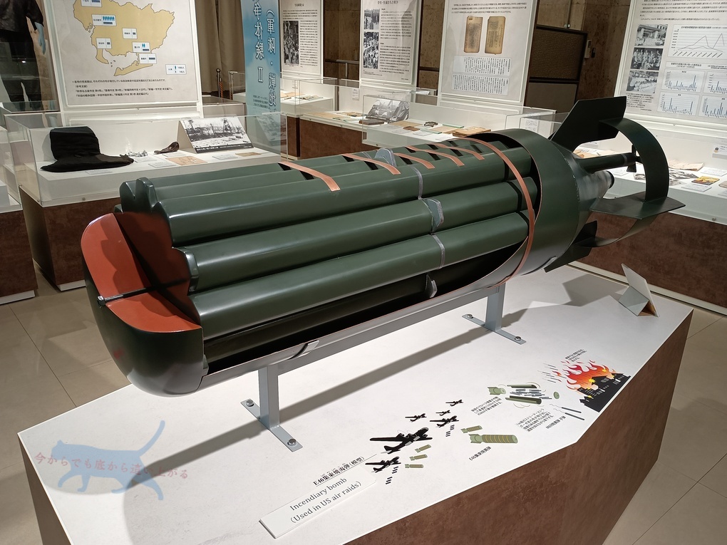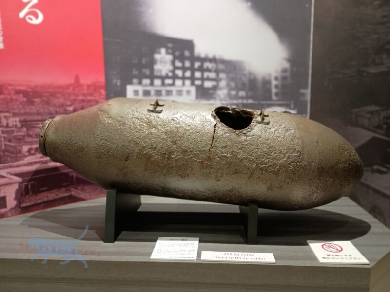 自分はまったく知らず驚いたけども、名古屋では不発弾が見つかる事が多いと教えていただいた。2025年2月と最近でも発見されており、画像の爆弾は同型の250キロ焼夷弾爆弾で平成9年に工事現場が見つかった本物。
