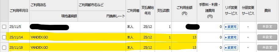 というのも利用日を見ると25年11月14日と18日なっており、自分は日本に帰国しており使っていない。