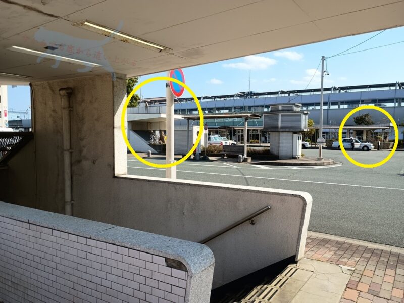 日本一短い地下街といわれている蒲郡北駅前地下街だけども、出入り口は3箇所もある。