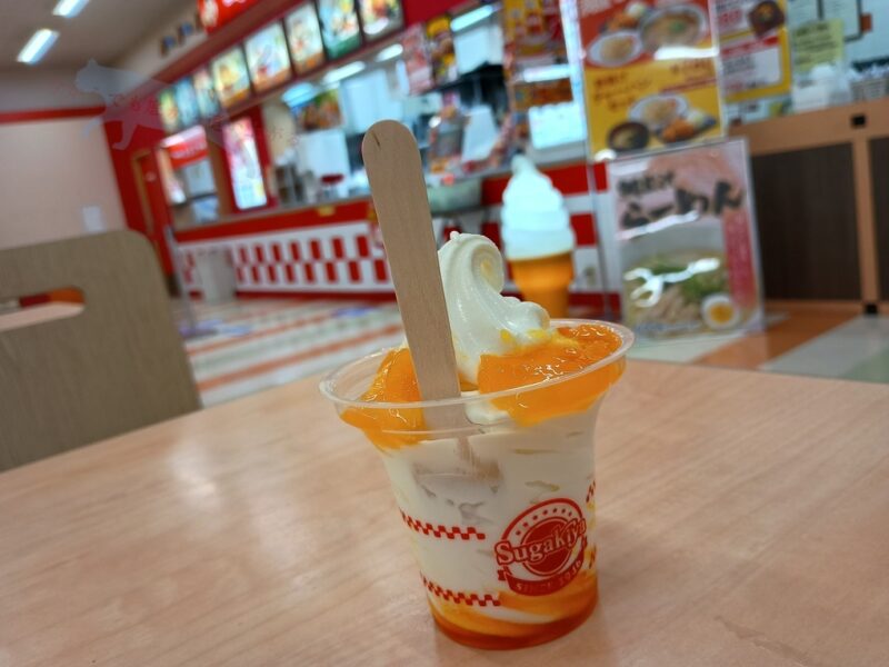 現在は東海地方(愛知、岐阜、三重)が中心に展開しているスガキヤもあったので、生意気にもデザートを頼む自分。