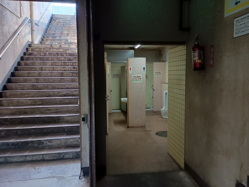 さすがに誰もいないといえどトイレ内部はまずいけど、通路からでも丸見え。