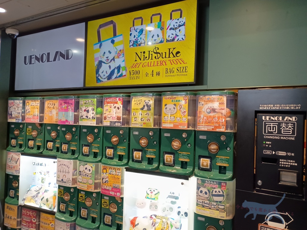 駅構内にはパンダシリーズのガチャもあって人が絶えない様子だった。 パンダ人気すげーー