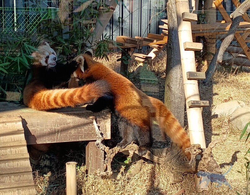 レッサーパンダ同士のじゃれあいはカワ(・∀・)イイ!! もふもふしたくなる