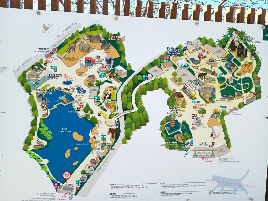 上野動物園は広く、東園・西園と大きくわかれている。