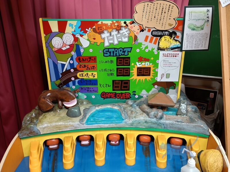 昔、この地域には悪さをしてた巨大なはんざきがいたということではんざき叩き(有料)。