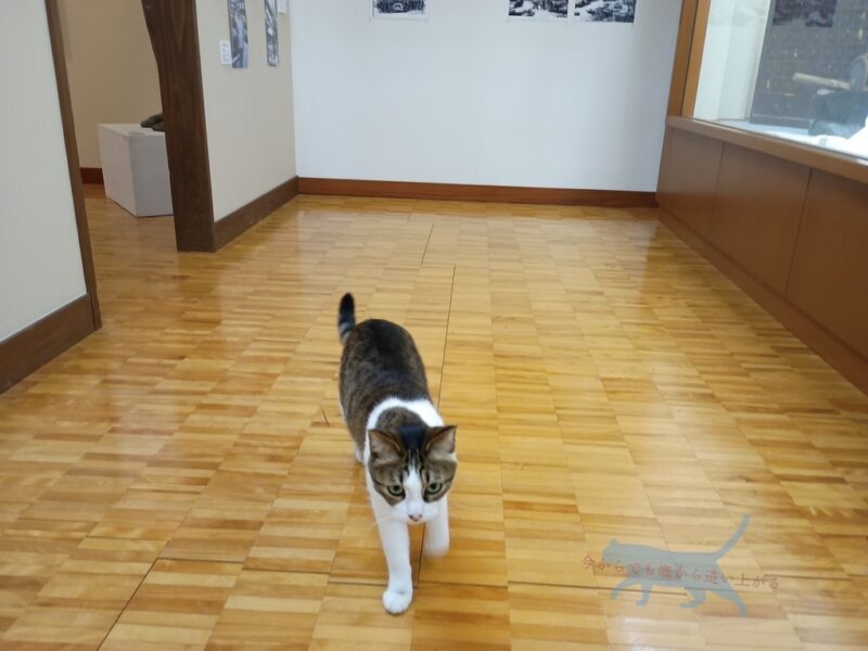 1階でもついてきたニャンコが、2階でも一緒に展示室をまわってくれた。可愛すぎだろ!