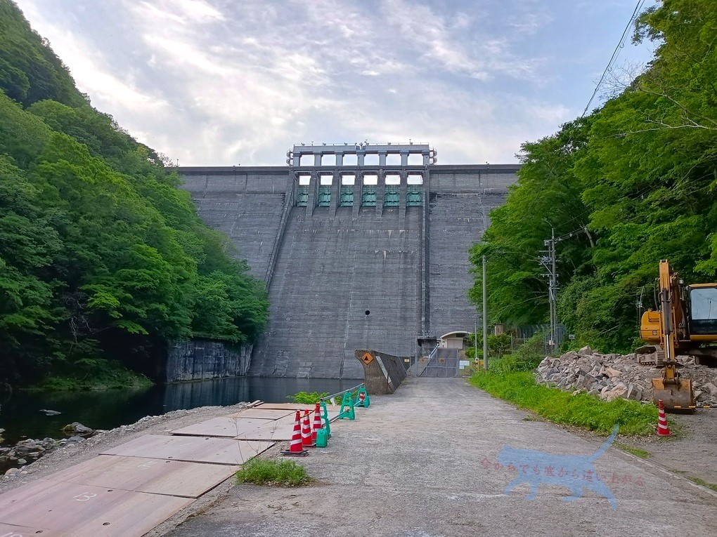 だらだらと歩いてきた高さは73.5メートルの湯原ダム。