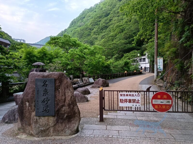 先に訪れたはんざきセンターからも近い場所に広がる温泉地。 ※はんざきはオオサンショウウオの別称。