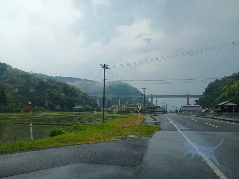 目的地の餘部駅が近づいてきて、この光景を初めて見たときは高速道路だと思った。