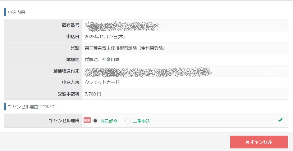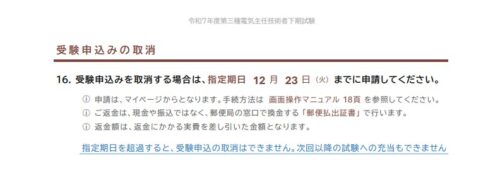 受験申込み後に返金手続きしてもらった。第三種電気主任技術者