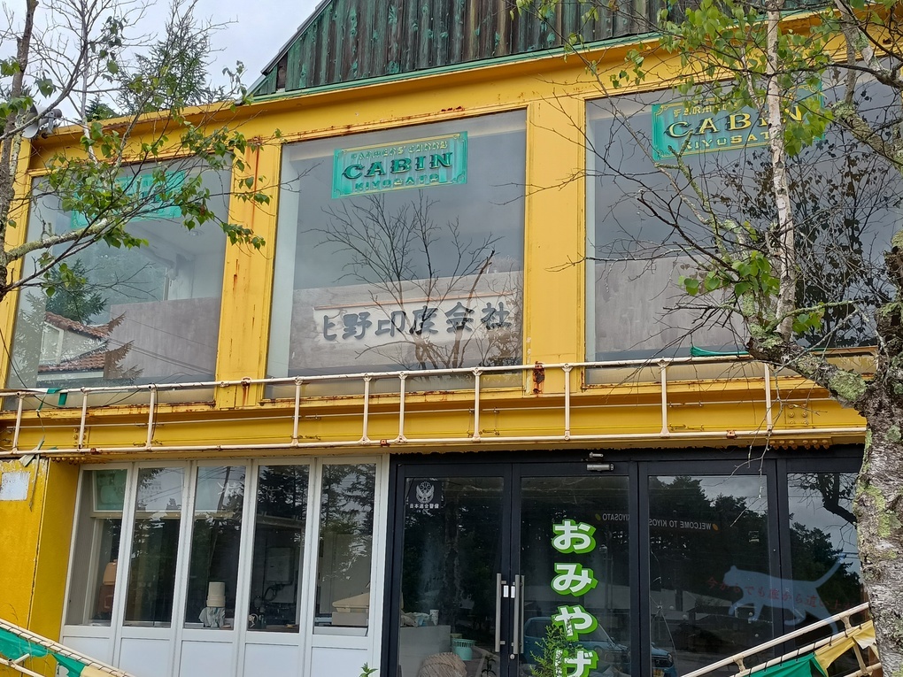 国道141号清里ライン沿いに現れる黄色と緑の建物なので非常に目立つ。